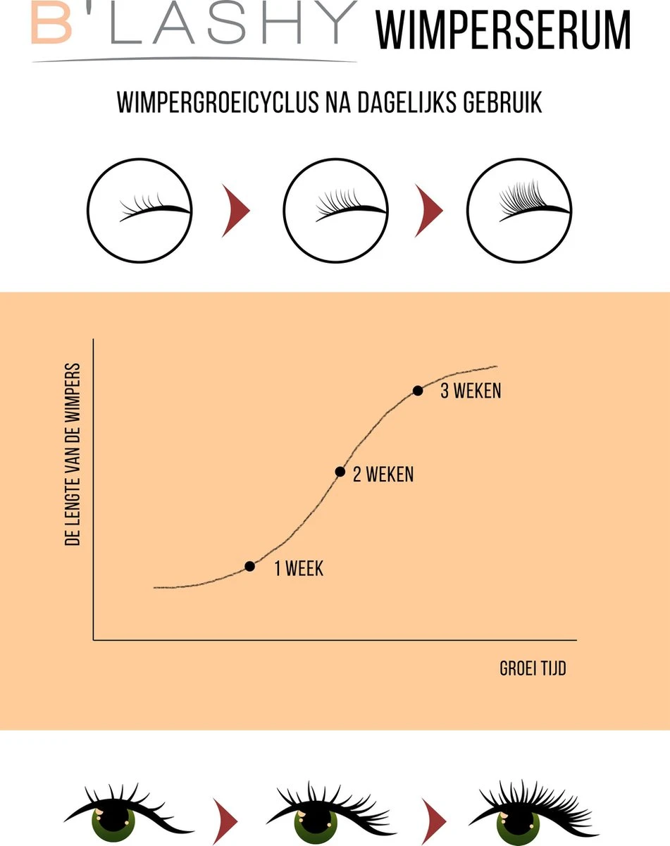 B’LASHY heeft onderzoek gedaan met 200 vrouwen. Met een groeipercentage van 98.9% is het wimperserum superieur in de markt! Bovendien werd tijdens het onderzoek het serum maar 1x per dag aangebracht voor het slapen. Door een groeipercentage van 98.8% staat ons wimper groeimiddel op nummer 1 van de lijst van alle geteste wimperserums.